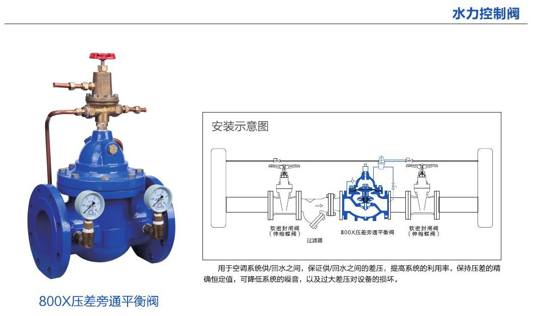 - 用于空調(diào)系統(tǒng)供/回水之間,保證供/回水之間的差壓,提高系統(tǒng)的利用率。