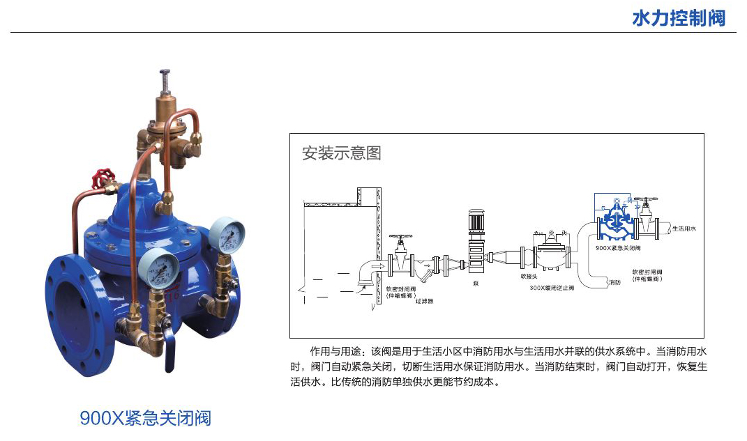 - 該閥是用于生活小區(qū)中消防用水與生活用水并聯(lián)的供水系統(tǒng)中。