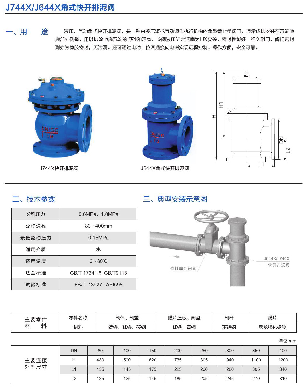 - 液壓、氣動(dòng)角式快開排泥閥,是一種由液壓源或氣動(dòng)源作執(zhí)行機(jī)構(gòu)的角型截止類閥門。